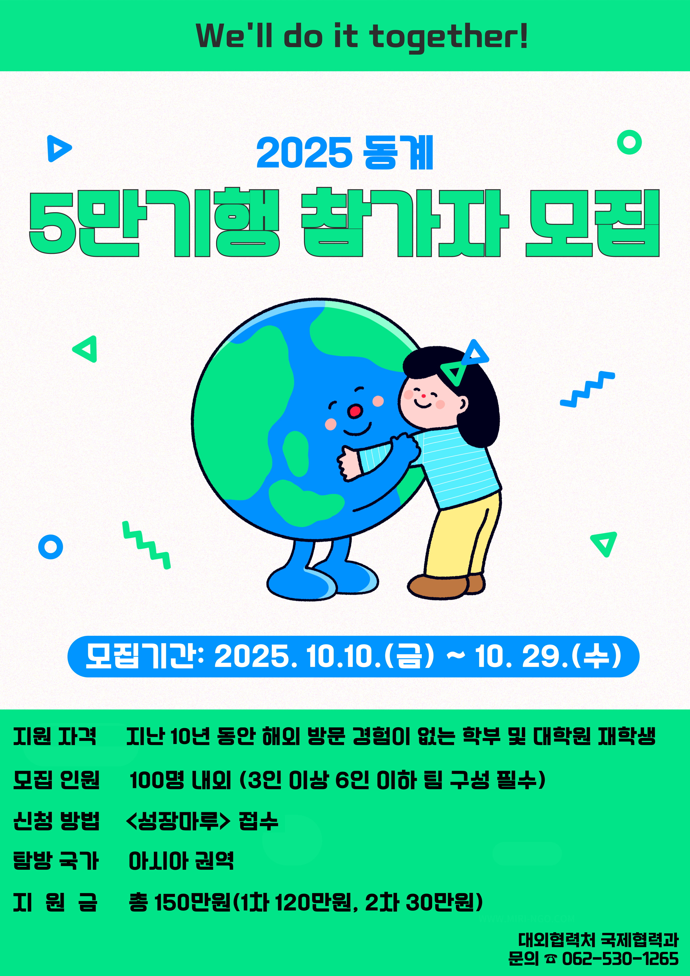 2025학년도 동계 5만기행 프로그램(해외 단기 탐방) 참가자를 모집하오니, 관심 있는 학생들의 많은 참여 바랍니다.